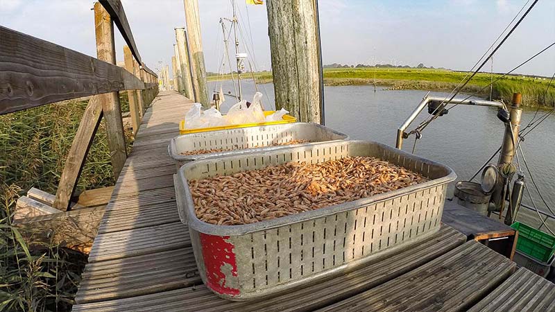 Gar nicht so einfach, die kleinen Delikatessen aus ihrer Schale zu befreien. Hat man es dann geschafft, wird die Mühe mit dem einzigartig leckeren Genuß frischer Krabben belohnt - frischer geht's nicht.